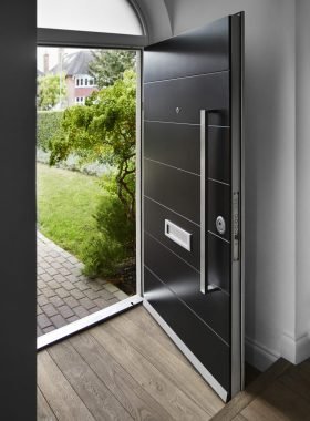 Front doors offer the main entrance into the London houses, which is why they are the favourite spot of burglars to intrude into the house. Made from galvanized steel which is one of the toughest materials, these doors protect you from intruders. A set always contains stainless steel door frame and steel leaf which are both cladded with engineered wooden panels to achieve any design or colour you might want to have.